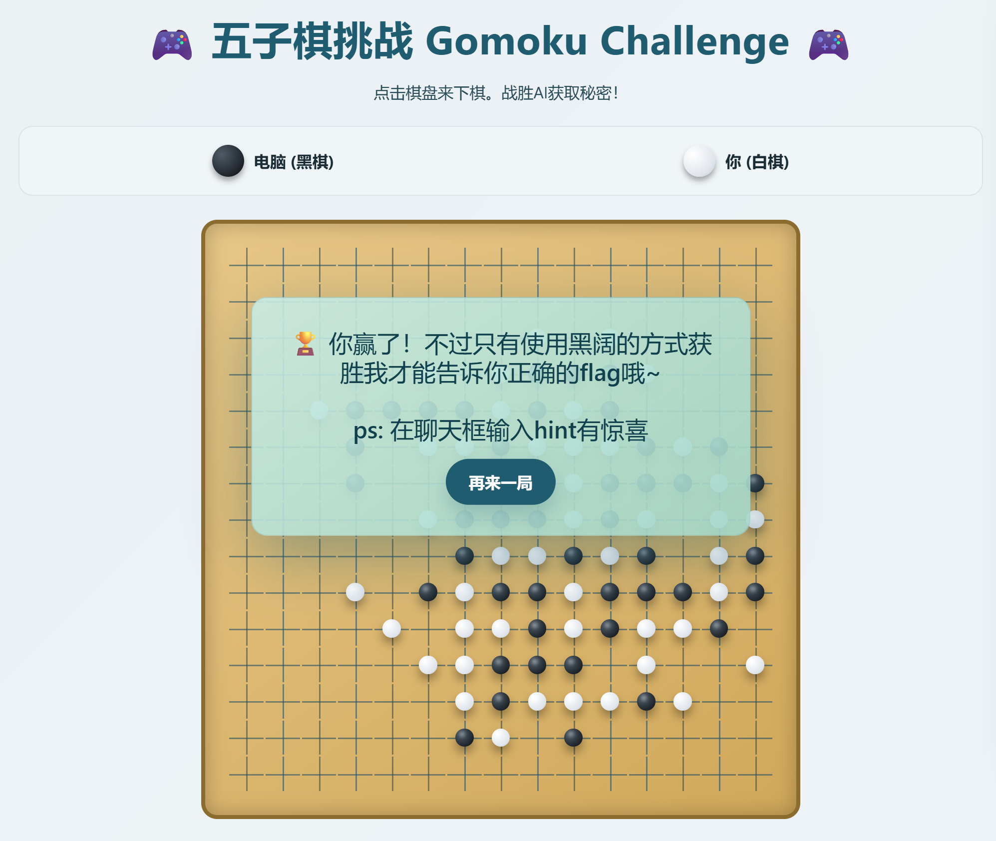 - 题目链接:[GCCCTF 2025]技能五子棋 | NSSCTF